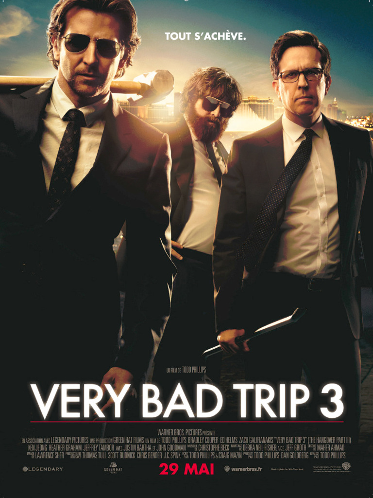 Dans VERY BAD TRIP 3, on retrouve Phil (Bradley Cooper), Stu (Ed Helms) et Alan (Zach Galifianakis) qui vont partir à la recherche de Chow (Ken Jeong). Ils ont besoin de lui afin de libérer Doug (Justin Bartha) qui a été kidnappé.