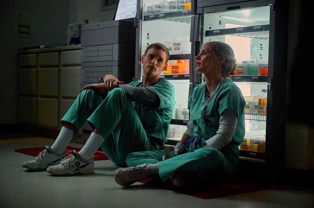 L’une des scènes les plus marquantes du film est la première nous montrant Eddie Redmayne (Charlie) figé devant un patient que d’autres infirmiers et médecins essaient de sauver. Nous avons le cadre qui se comprime peu à peu sur notre tueur et l’on comprend qu’il n’est pas totalement irresponsable dans cette mort…